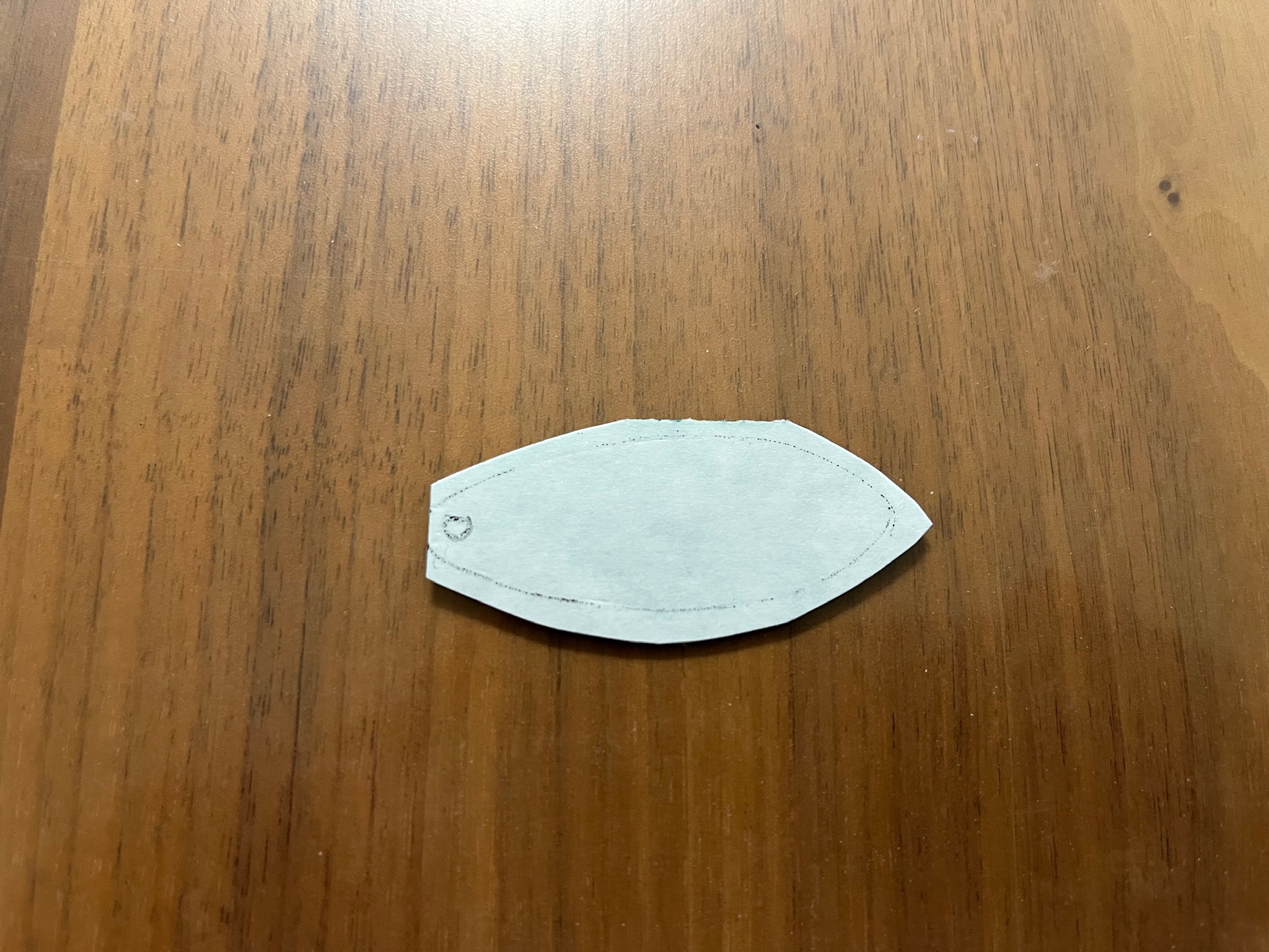 今回はスピナーベイトのブレードの貼るので、まず大体のかたちを写します。大きめに切り出して、後でカットするのでここではざっくり切ります。