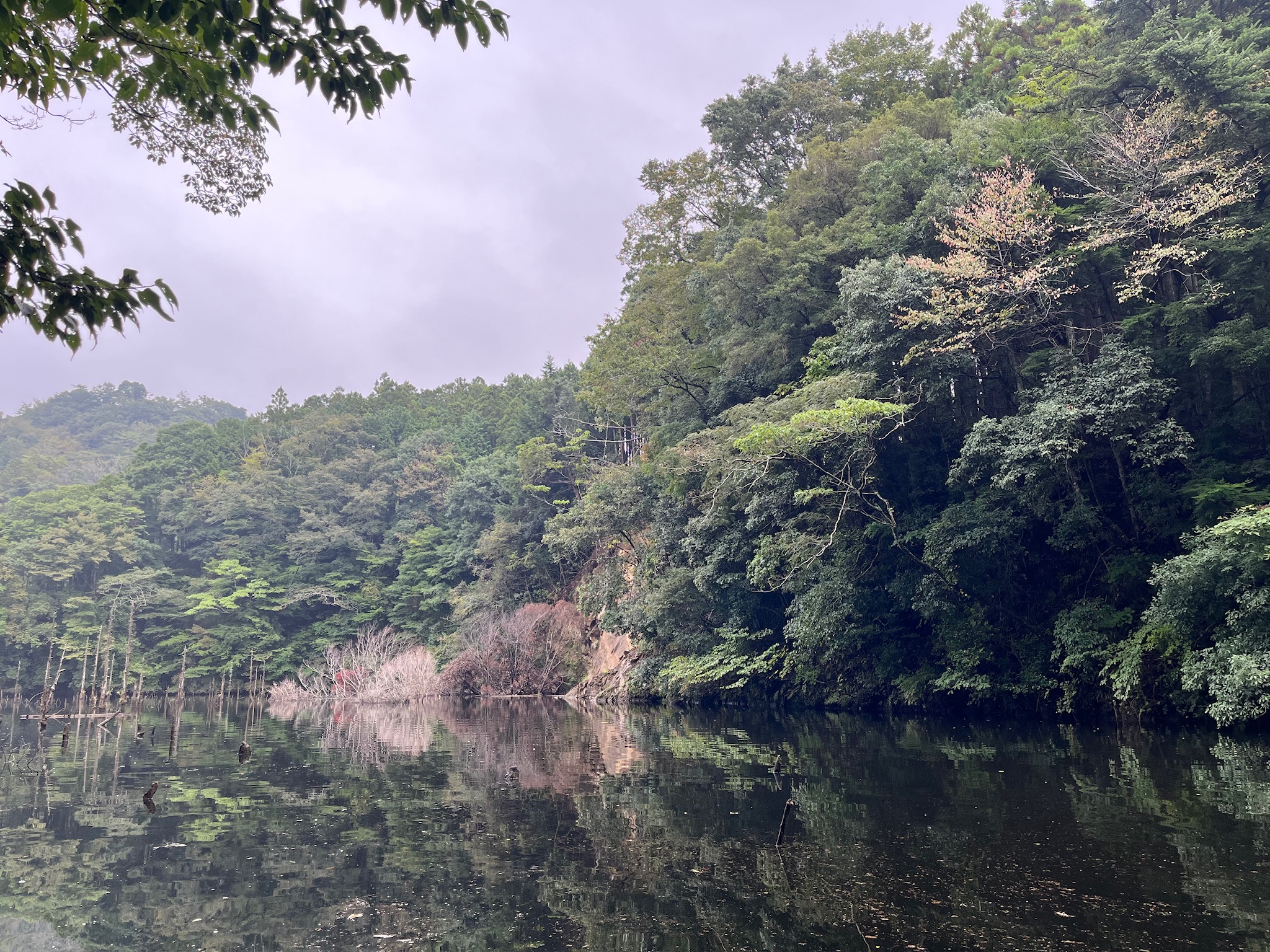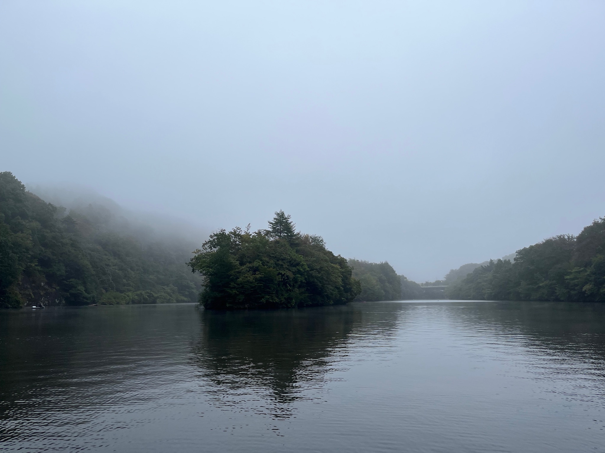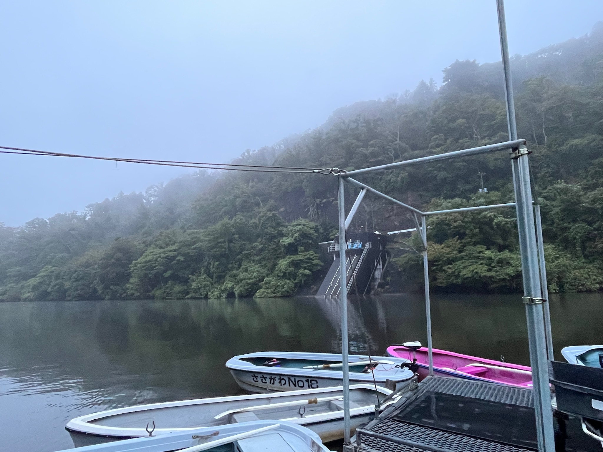 雨で水面に変化が生まれ何かのきっかけになり活性が上がることを期待して、キャスト数を増やしましたが反応は得られず。雨も上がりダムサイトエリアまで探りながら戻ります。