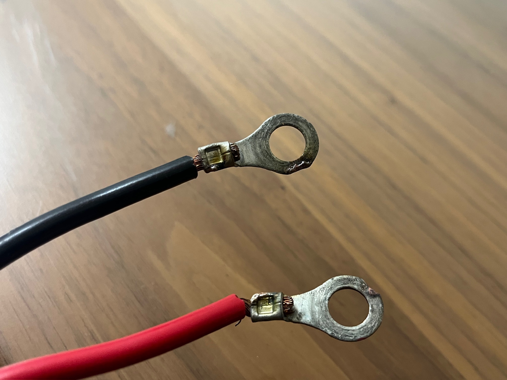 違和感を感じ1回接続をしなおした記憶があります。延長ケーブルをバッテリー側の端子に接続した時、パチンと火花が飛んだのです。しかし、エレキ側がきちんと接続した場合も火花が飛ぶ場合があるので、配線順序が間違っているとは思わず、もう1回接続し直してみようと思いました。